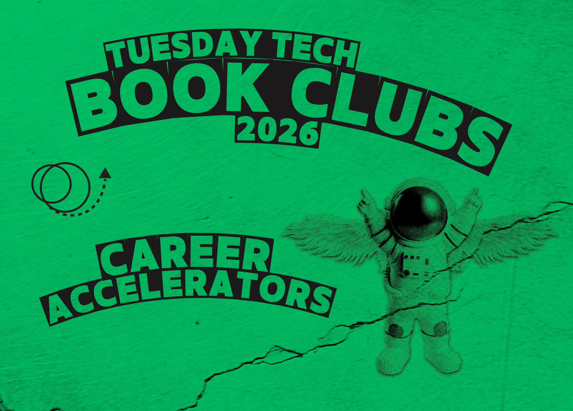Tuesday Tech Book Clubs are peer accelerators meeting six times in 2026 around one of four tracks and shared piece media for reflection/discussion: